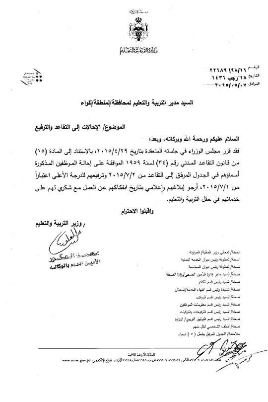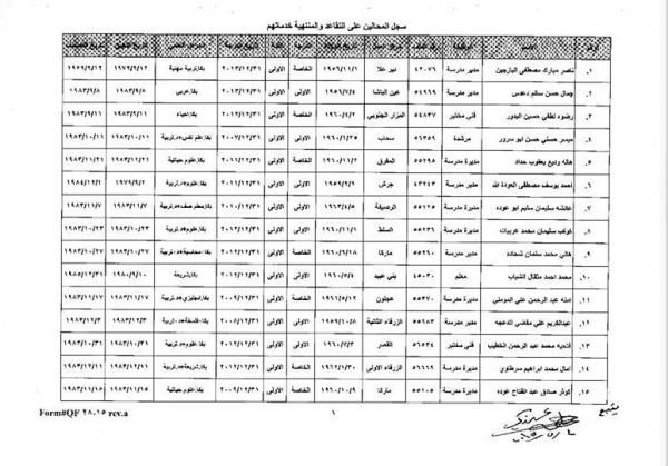 وتاليا أسماء المحالين على التقاعد: