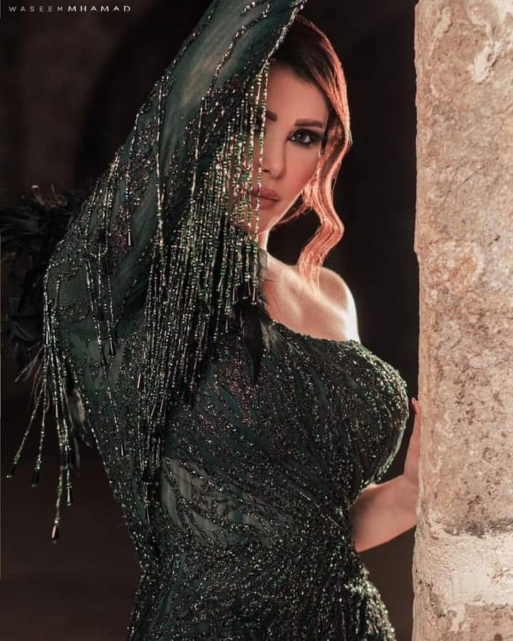 تظهر في احدث ظهور لها بفستان جميل باللون الزيتي
