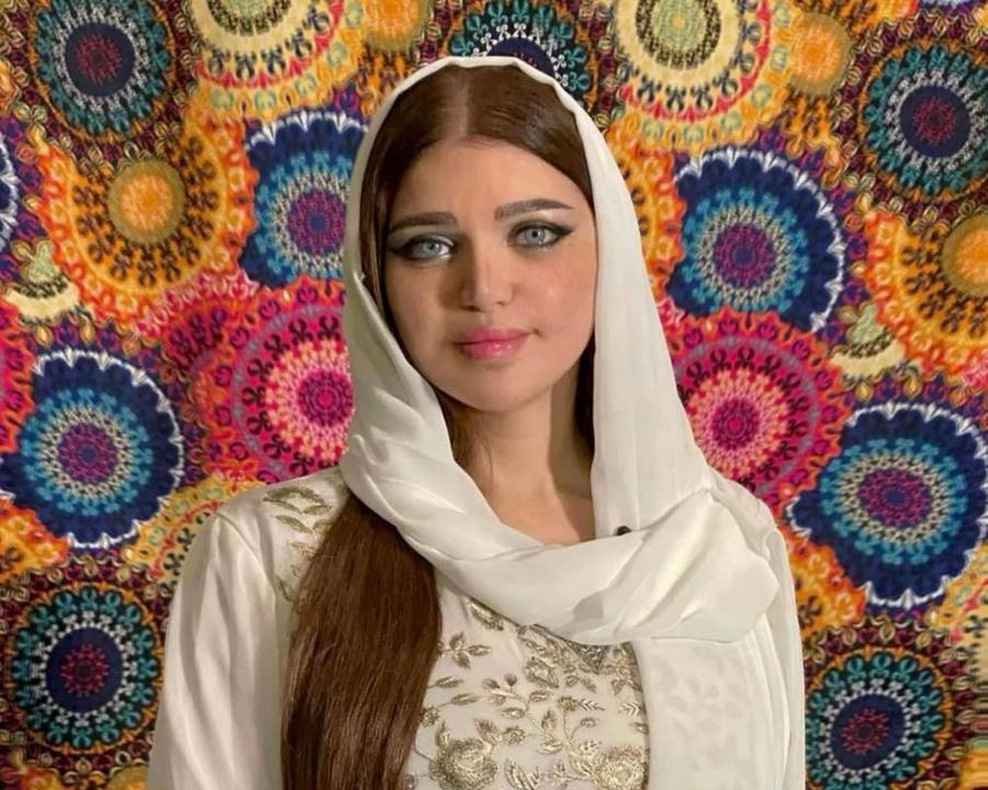 وانتعلت حذاء ذا كعب عالٍ باللون الأبيض الشفاف، وتزينت بمجموعة من المجوهرات الذهبية، حيث ضمت العديد من السلاسل المدرجة مختلفة الشكل، بالإضافة لنظارة شمسية كبيرة الحجم