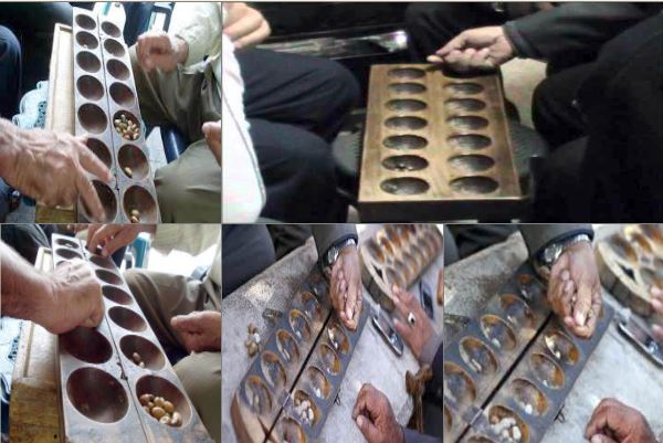 وتعتمد طريقة تدوير الحصى عكس عقارب الساعة حيث يحمل اللاعب كلّ الحصى من الجرن الأول ويضع في كل جرن حصوة حتى ينتهي ويقوم بأخذ حصوات الجرن الأخير ويعدّها فإن بقيت حصوة واحدة يتوقف عن العد أما إذا كانت ثلاثة أو أكثر فيقوم بعدّها وفي حال كانت مفردة وتسمى (قرعة) يوقف العد ويبدأ خصمه باللعب. وأما اللعبة الثانية فتسمى (العاقلة) وهي تعتمد على إعمال الفكر وهي الشائعة بين الكهول ولأنها كذلك سميت بالعاقلة