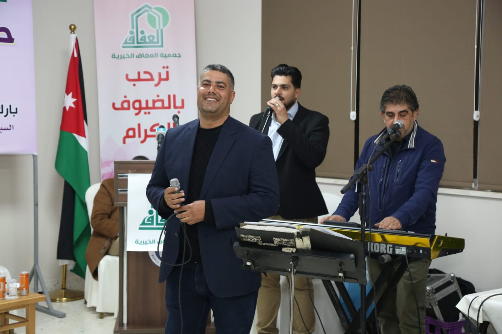 وألقى د. منذر زيتون نائب رئيس جمعية العفاف الخيرية كلمة الجمعية هنأ فيها العرسان بزواجهم وقدم الشكر للبنك الإسلامي الأردني على دعمه المتواصل لأعمال الجمعية ولجمعية خليل الرحمن الخيرية على استضافة هذا الحفل وتقديم التسهيلات لإقامته في قاعات الجمعية كما شكر المساهمين في تقديم الهدايا النقدية والعينية للمشاركين في الحفل. مؤكداً استمرار الجمعية في برامجها التوعوية ومساعدة الشباب على الزواج.