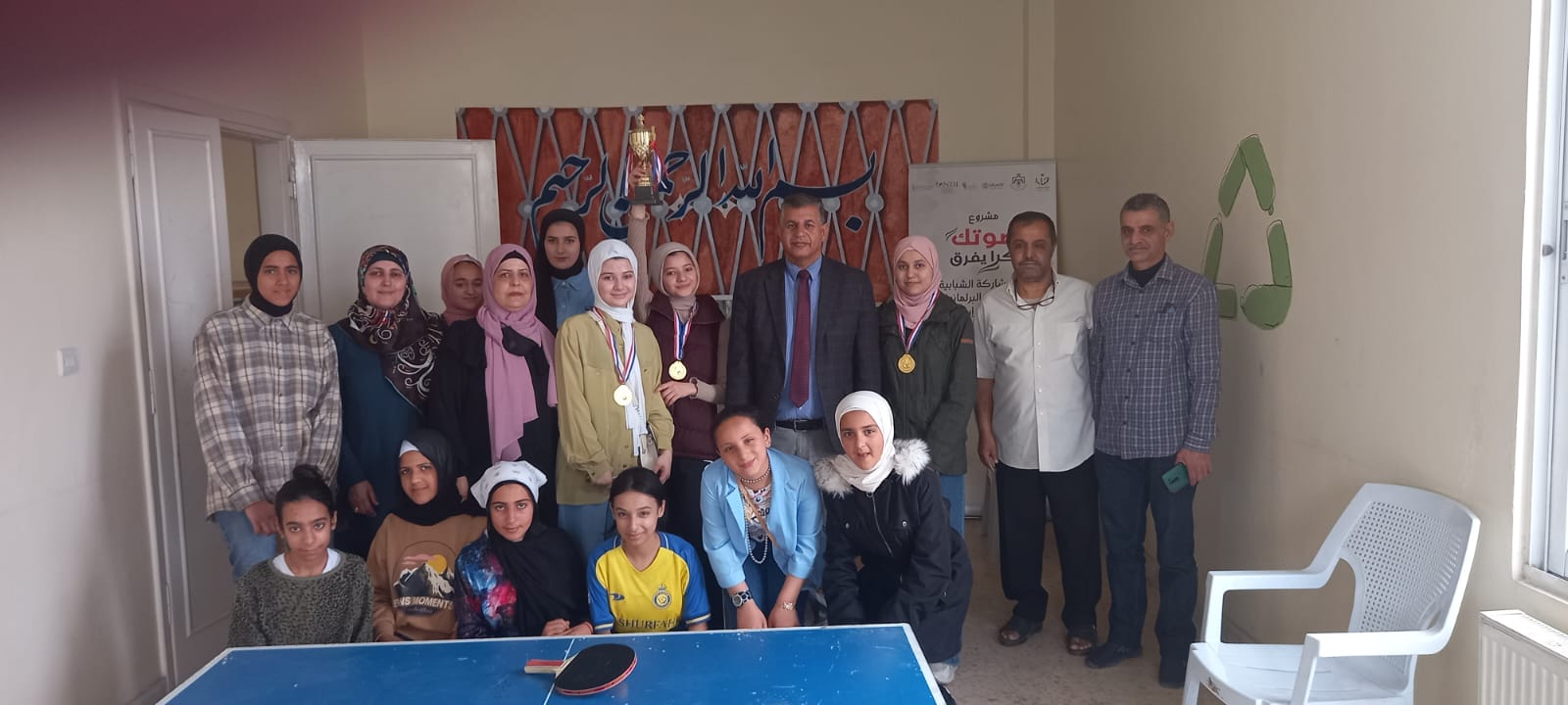 وذلك ضمن الفئة العمرية 12_14 & 15_17 إلى ٤ مجموعات، وتصفيتهم إلى مجموعتين الفائزين في بطولة طاولة التنس و قد تم تسليم الكأس و توزيع الميداليات على الفائزين بالمراتب الثلاث ( ريتاج فراس بطاينة، جنى فراس بطاينة، ريام رائد بطاينة )