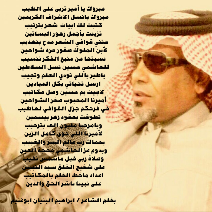 قصيده مرفوعه إلى الأمير حسين بن عبدالله بمناسبة زفافه الميمون