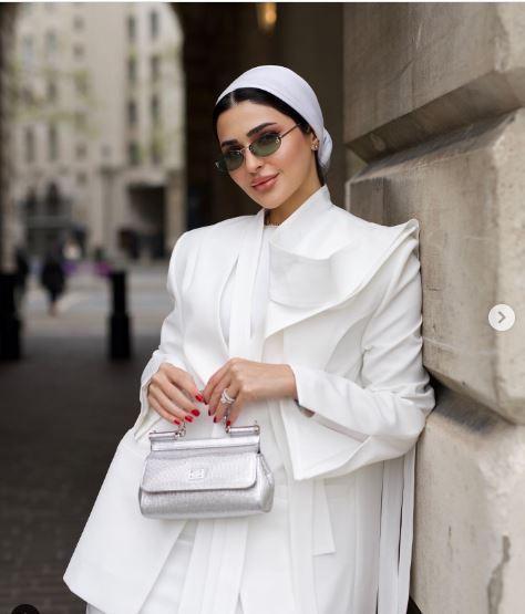 يبدو أن القصات الملتفة حول الجسم من الصيحات الدارجة في 2024، اختاري البدلة البيضاء بهذا الستايل من وحي إطلالة الفاشينيستا المحجبة سهى طة، ونسقيها مع حذاء مدبب من نفس لونها، واعتمري طرحة بيضاء زينيها بقبعة بتصميم مبتكر.