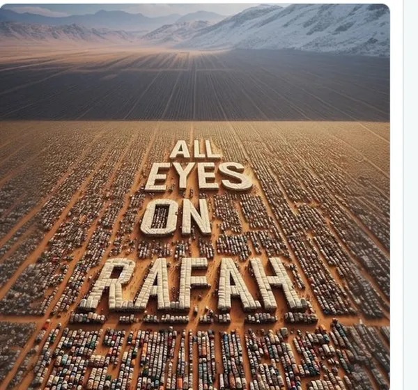 رم - - تمكنت صورة تحمل عنوان "كل العيون على رفح" من حصد 37 مليون مشاركة على وسائل التواصل الاجتماعي في أقل من 24 ساعة.