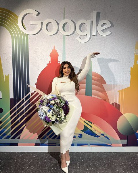 رم - نشرت المؤثرة على مواقع التواصل الاجتماعي مجموعة صور لها برفقة خطيبها وبعض الأشخاص وبيدها باقة من الورد، وعلّقت عليها: "اليوم عشت لحظة قوية في مسيرتي، كان لي الشرف أن ألقي خطابًا أمام فريق شركة جوجل ويوتيوب. شكرًا لاستضافتي".