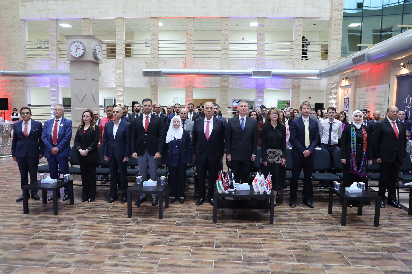 ورعى أمسية الجامعة سفير المملكة المتحدة السيد فيليب هول، بحضور رئيس مجلس أمناء الجامعة العين الدكتور يعقوب ناصر الدين، ورئيسة هيئة المديرين الدكتورة سناء شقوارة وأعضاء الهيئة، ورئيسة الجامعة الأستاذة الدكتورة سلام المحادين، وعدد من أعضاء مجلس الأمناء، والعمداء، وأصحاب المصالح والاختصاص، بما في ذلك ممثلو الجامعات المستضافة للبرامج.