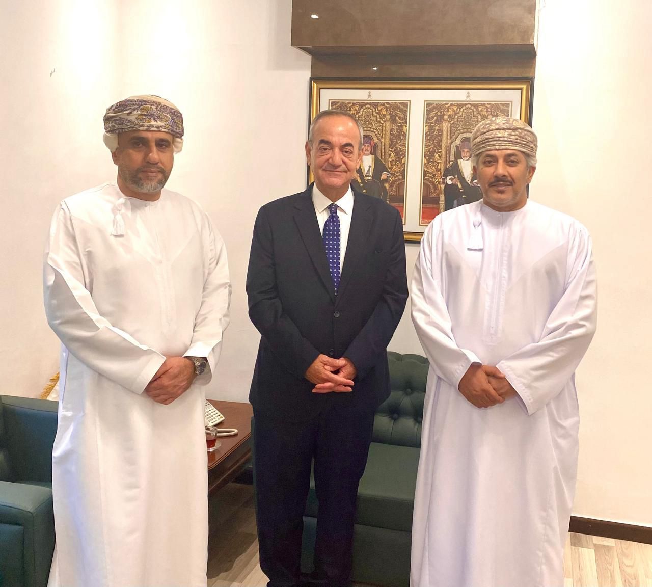 رم - قام سعادة العين عبدالحكيم الهندي، رئيس لجنة السياحة والتراث في مجلس الأعيان الأردني رئيس جمعية الفنادق الأردنية، بزيارة إلى سفارة سلطنة عمان في العاصمة عمان، حيث كان في استقباله سعادة الشيخ فهد بن عبدالرحمن العجيلي، سفير سلطنة عمان لدى المملكة الأردنية الهاشمية، وبحضور سعادة المستشار ونائب رئيس البعثة، يعقوب بن بدر الرقيشي.