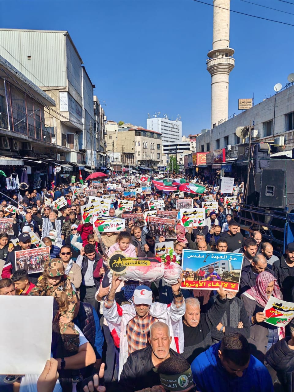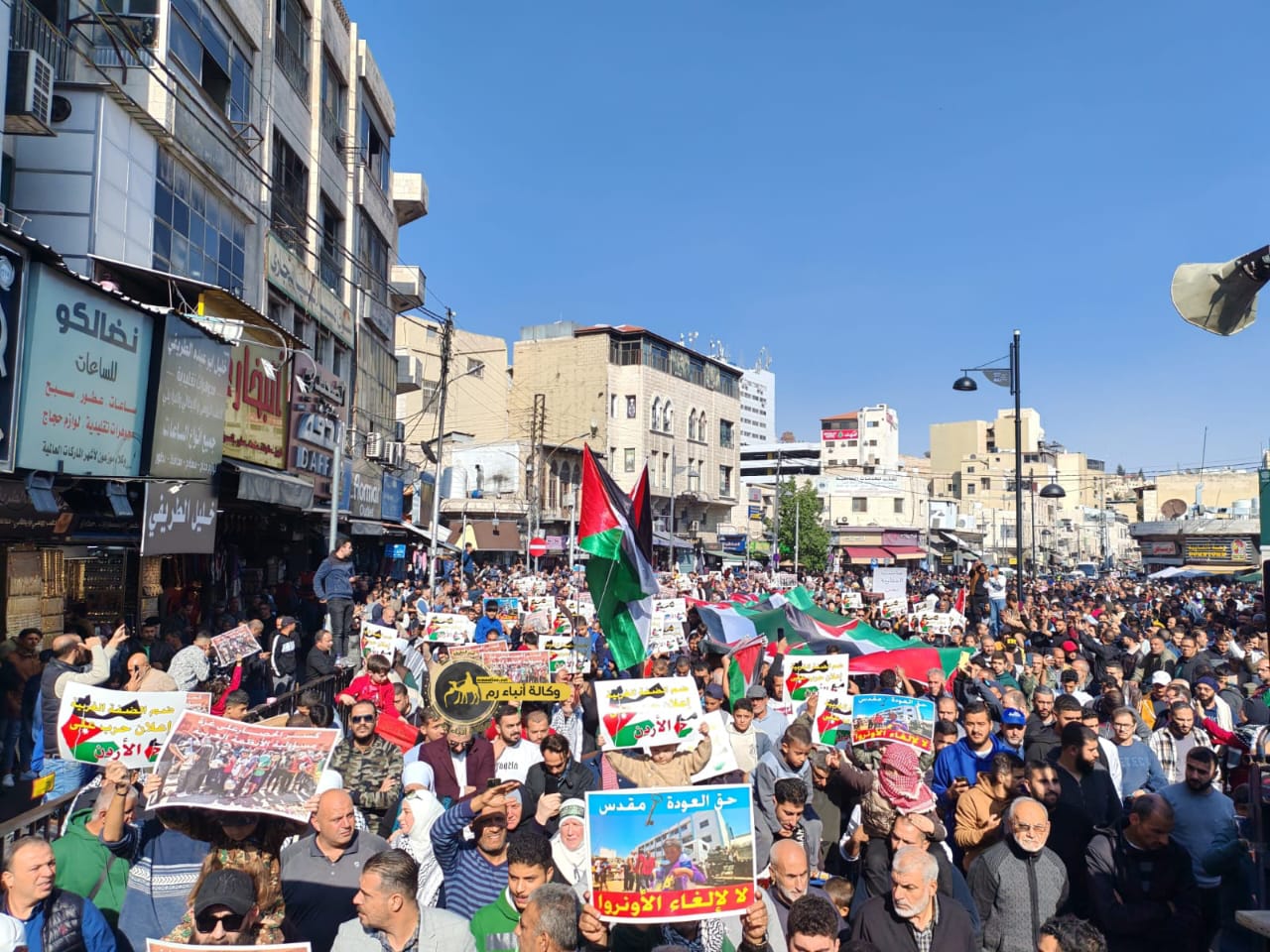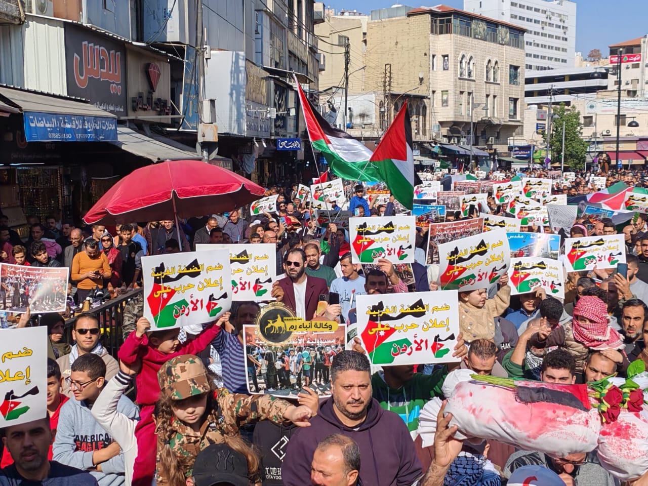 انطلقت مسيرة بعد صلاة الجمعة اليوم من أمام المسجد الحسيني في العاصمة عمان وباقي المخططات تنديدا بالعدوان الإسرائيلي على قطاع غزة، ورفضاً لمخططات إسرائيل لتصفية القضية الفلسطينية.