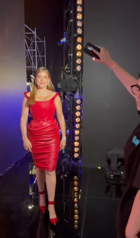 رم - أطلت مقدمة برنامج Arabs got talent، ريا أبي راشد، على جمهورها بفستان أحمر اللون من خامة الجلد في ثاني الحلقات المباشرة من البرنامج.