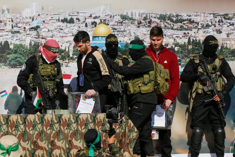 وسلّمت المقاومة الفلسطينية بغزة السبت، 3 أسرى إسرائيليين بينهم اثنان يحملان الجنسيتين الأميركية والروسية، إلى اللجنة الدولية للصليب الأحمر، التي بدورها نقلتهم إلى الجيش الإسرائيلي ضمن الدفعة السادسة من الصفقة.