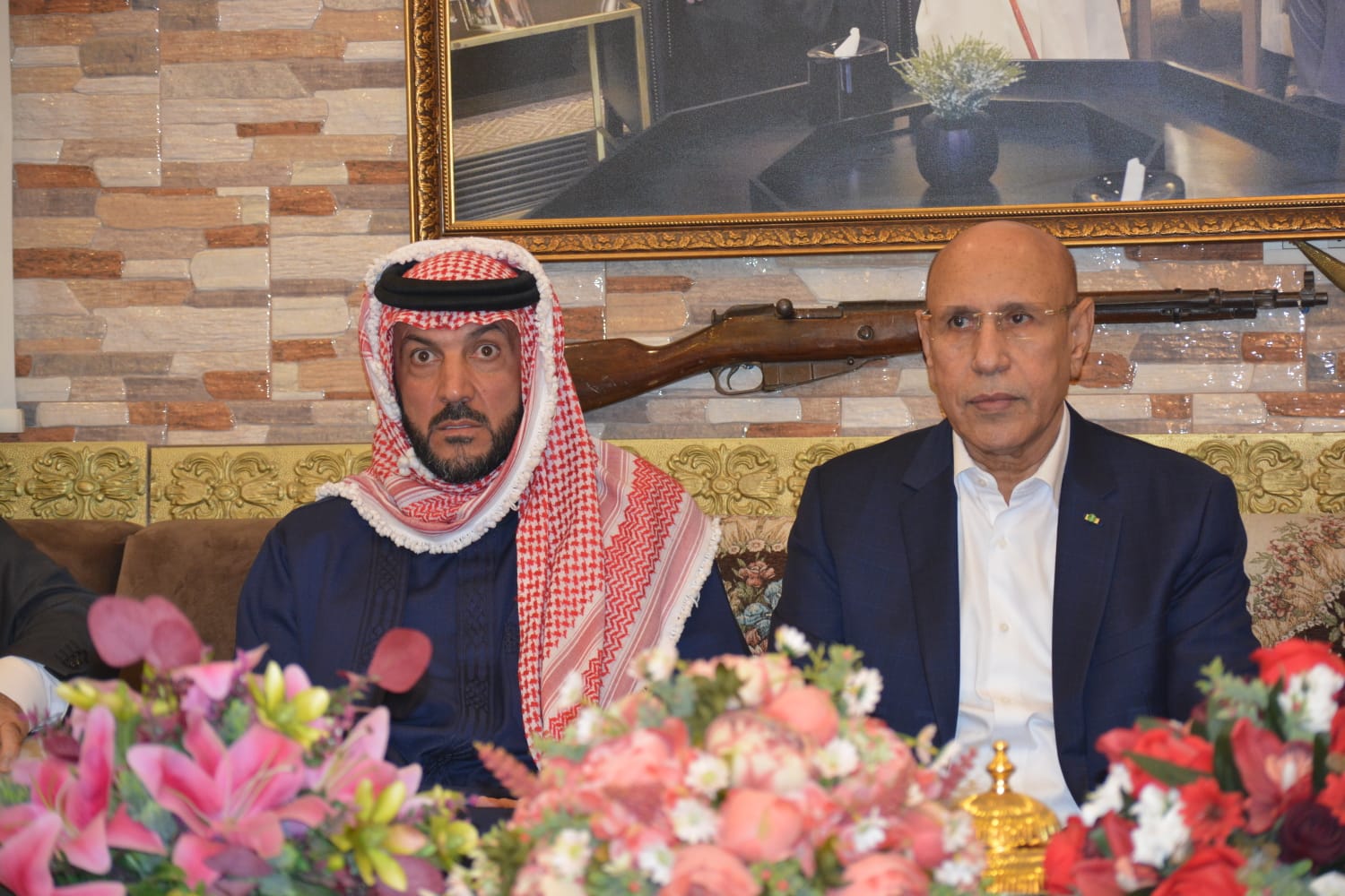 وكان في استقبال الرئيس الموريتاني في ديوان الشيخ عبدالكريم سلامة الحويان جمع كبير من أصحاب المعالي، والسعادة، والعطوفة، وشيوخ العشائر.
