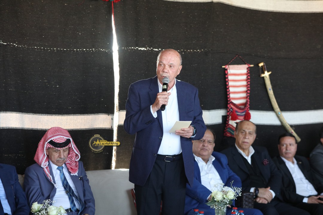 وقد طلب سماحة الشيخ عصام عربيات بعد ان قدمه معالي الدكتور رجائي المعشر باسم الجاهة، فيما رد دولة فيصل الفايز بالايجاب والقبول بحضور عدد كبير من اصحاب المعالي والسعادة .