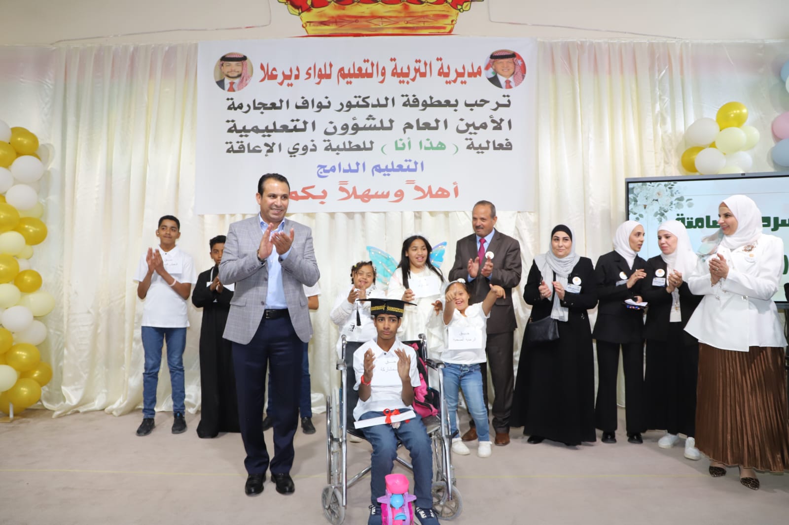 وبين الدكتور العجارمة خلال فعالية للتعليم الدامج، نظمتها مديرية تربية وتعليم لواء دير علا اليوم، بعنوان " هذا أنا " للطلبة ذوي الإعاقة، أن الأردن حقق تقدمًا كبيرًا في تحقيق الدمج في قطاع التّعليم، مشيرًا إلى أن الاستراتيجية العشرية للتعليم الدامج 2020-2030، بدأت بدمج الطلبة بنسبة 1.7% ووصلت عام 2025 نسبة 7.4، مؤكدًا أن رؤية الوزارة لرفع نسبة التحاق الأطفال من ذوي الإعاقة في سن التعليم بالمدارس النظامية إلى 10% في حلول عام 2030.