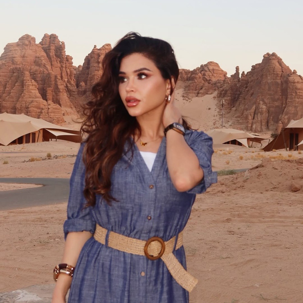 إطلالة نهى نبيل بفستان جينز في مدينة العلا السعودية