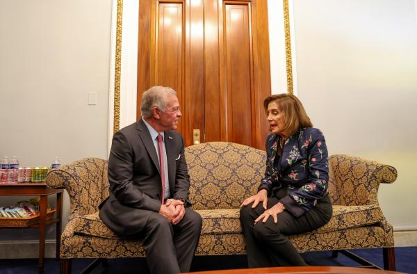رم - التقى جلالة الملك عبدالله الثاني مع رئيسة مجلس النواب الأمريكي السابقة نانسي بيلوسي، في واشنطن.