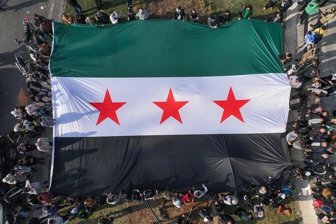 بالعلم السعودي.. سوريون يحتفلون بإعلان الرئيس الأميركي دونالد ترامب عن رفع العقوبات المفروضة على بلادهم، أثناء زيارته للمملكة العربية السعودية الثلاثاء 13 مايو/ آيار