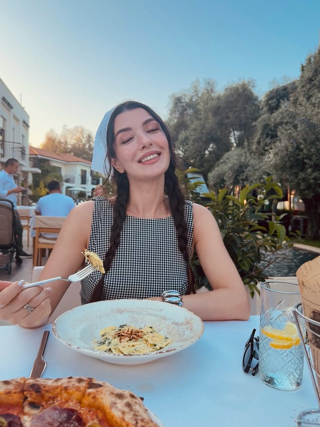 رم - نشرت النجمة التركية #أصليهان_جونر عدة صور عبر حسابها على إنستغرام من أحدث إطلالاتها، حيث ارتدت فستانًا صيفيًا قصيرًا بصيحة الكاروه، ونسّقت مع اللوك حقيبة متناهية الصغر على شكل قوقعة. أما تسريحة شعرها فكانت على هيئة ضفيرتين، وزيّنتها بسكارف أبيض. ما رأيك في اختيارها؟