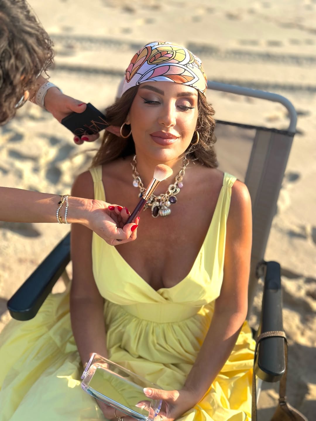 رم - شاركت الإعلامية اللبنانية #ريتا_حرب صورا من أحدث جلسة تصوير من تحضيراتها لبرنامج قسمة ونصيب بموسمه الرابع في إسطنبول، وظهرت بفستان باللون الأصفر من علامة SLėėN على شاطئ البحر، نسقته مع مجوهرات مرصعة بالأحجار الكريمة من علامتي Atelier Elmay و JES WELLIS وشال ملون على الرأس.