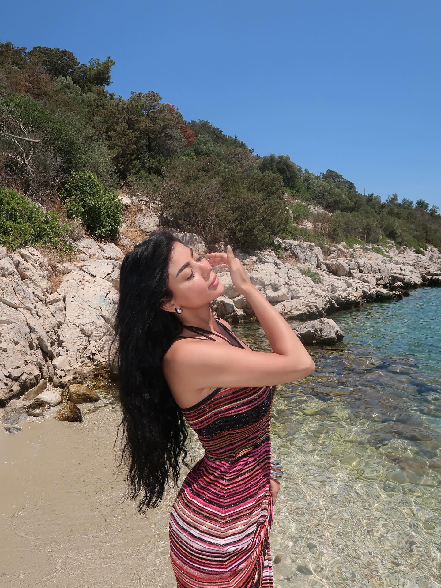 كارولين عزمي بفستان متدرج الألوان على البحر