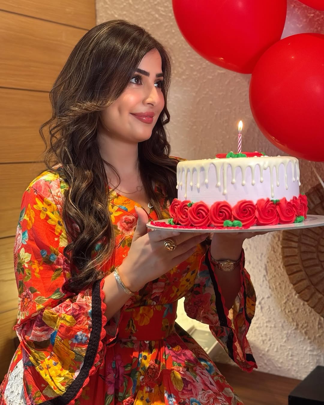 رم - نشرت الإعلامية #رؤى_الصبان عدة صور وفيديو من احتفالها بعيد ميلادها، وقد اختارت فستانًا مطبعا بالزهور ونسقت معه مجوهرات ناعمة.. وعلقت على الصور: "ابتسامة اليوم هي بداية لكل شيء جميل قادم"