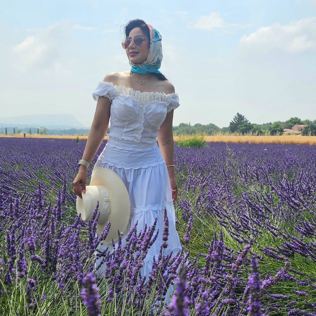 لجين عمران بإطلالة ريفية بين أشجار اللافندر