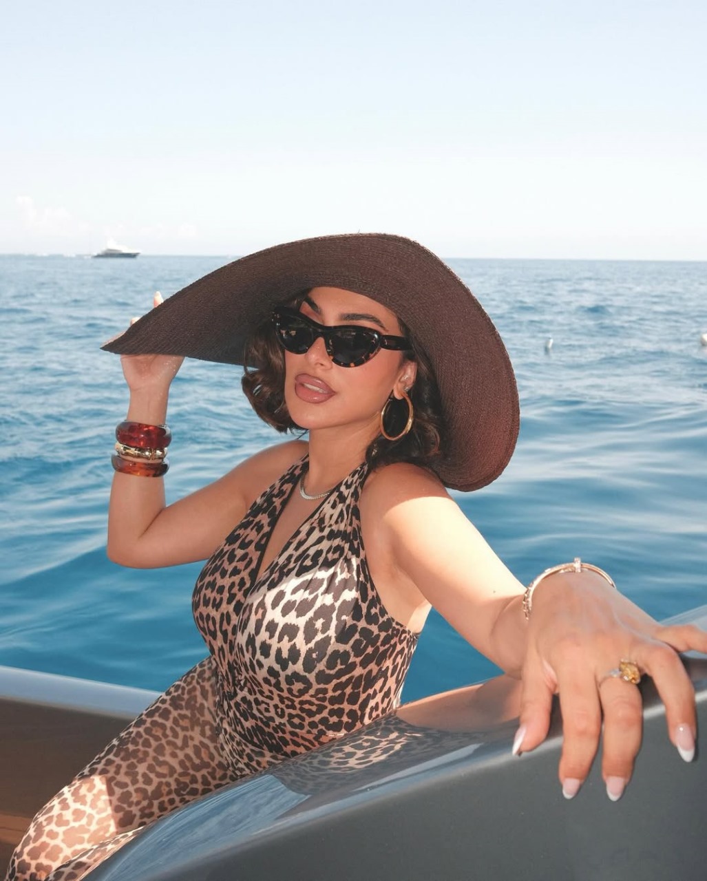 هدى قطان تختار جمبسوت بنقشة النمر في عطلتها بإيطاليا