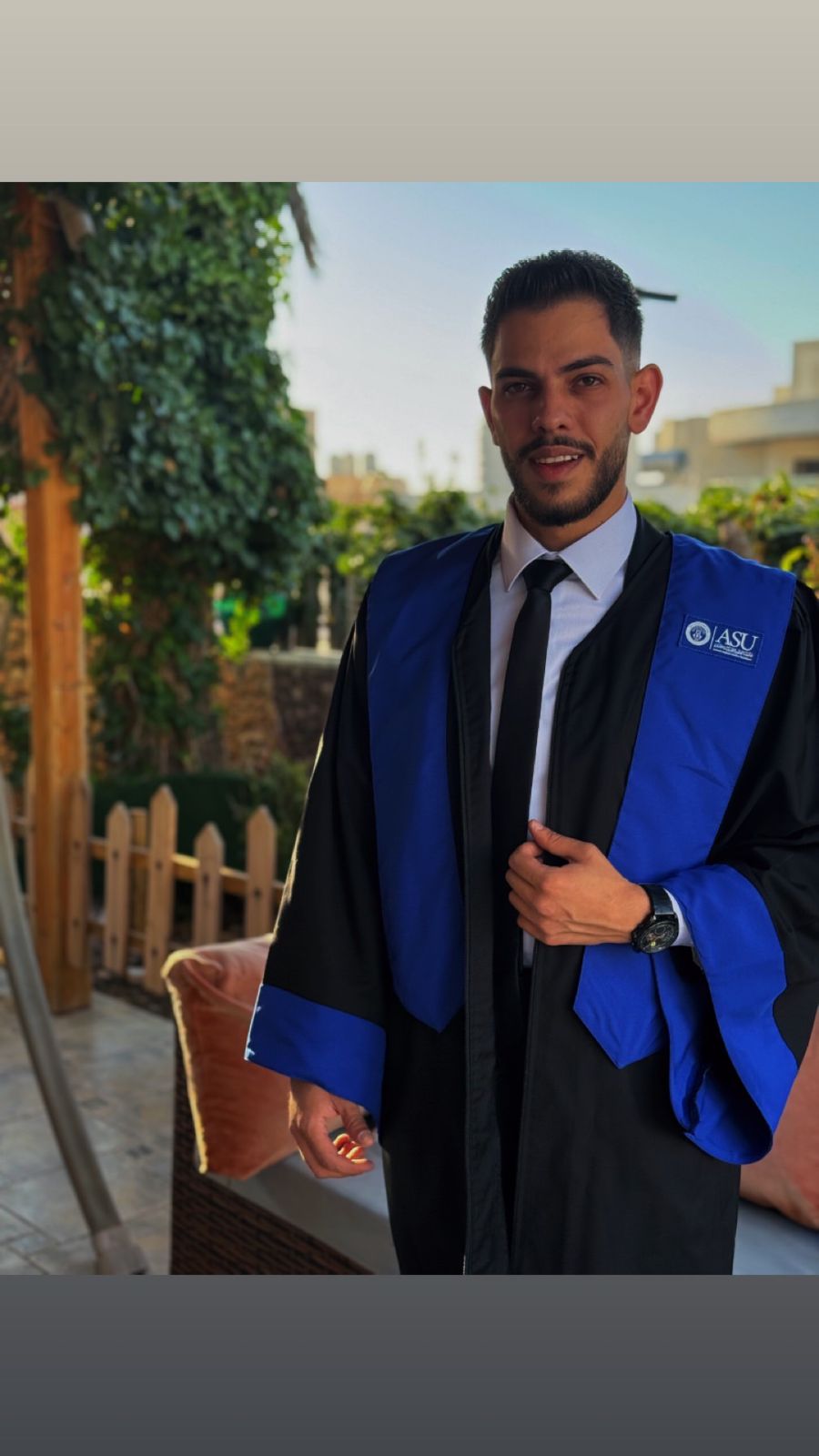 يتقدم السيد طارق القيسي وزوجته الزميلة ابتهال العدوي من ابن أخته الغالي زيد جميل هارون بأجمل آيات التهنئة والتبريك بمناسبة تخرجه من جامعة العلوم التطبيقية وحصوله على درجة البكالوريوس في القانون .