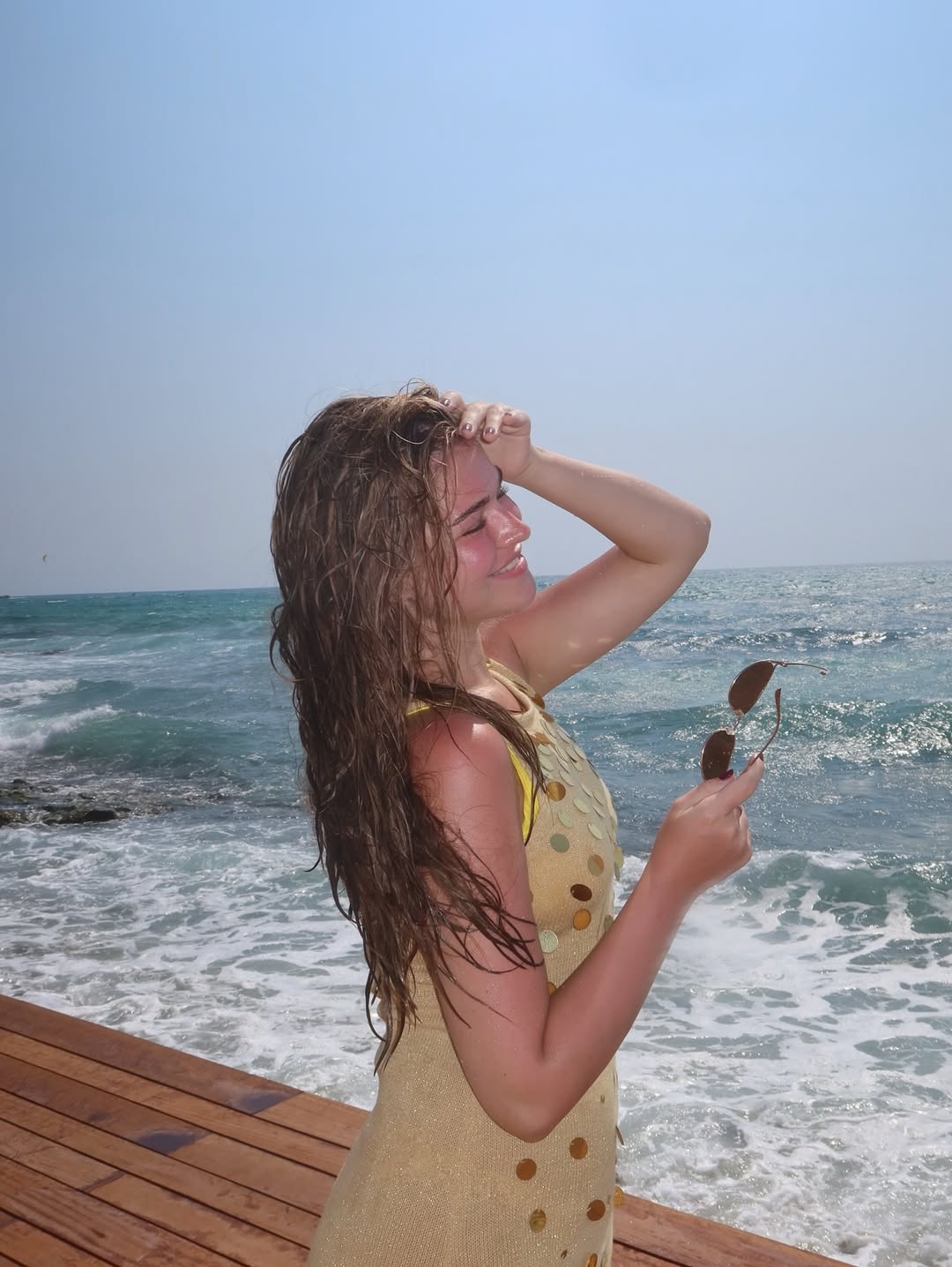 رم - نشرت البلوغر #أليونا عدة صور عبر حسابها على إنستغرام من إطلالتها الأحدث على الشاطئ، واختارت فستانًا مميزًا باللون الذهبي، ورُصع بوحدات لامعة باللون ذاته، ونسقت معه نظارة شمسية باللون البني، هل كان اللوك مناسبًا لأجواء البحر؟