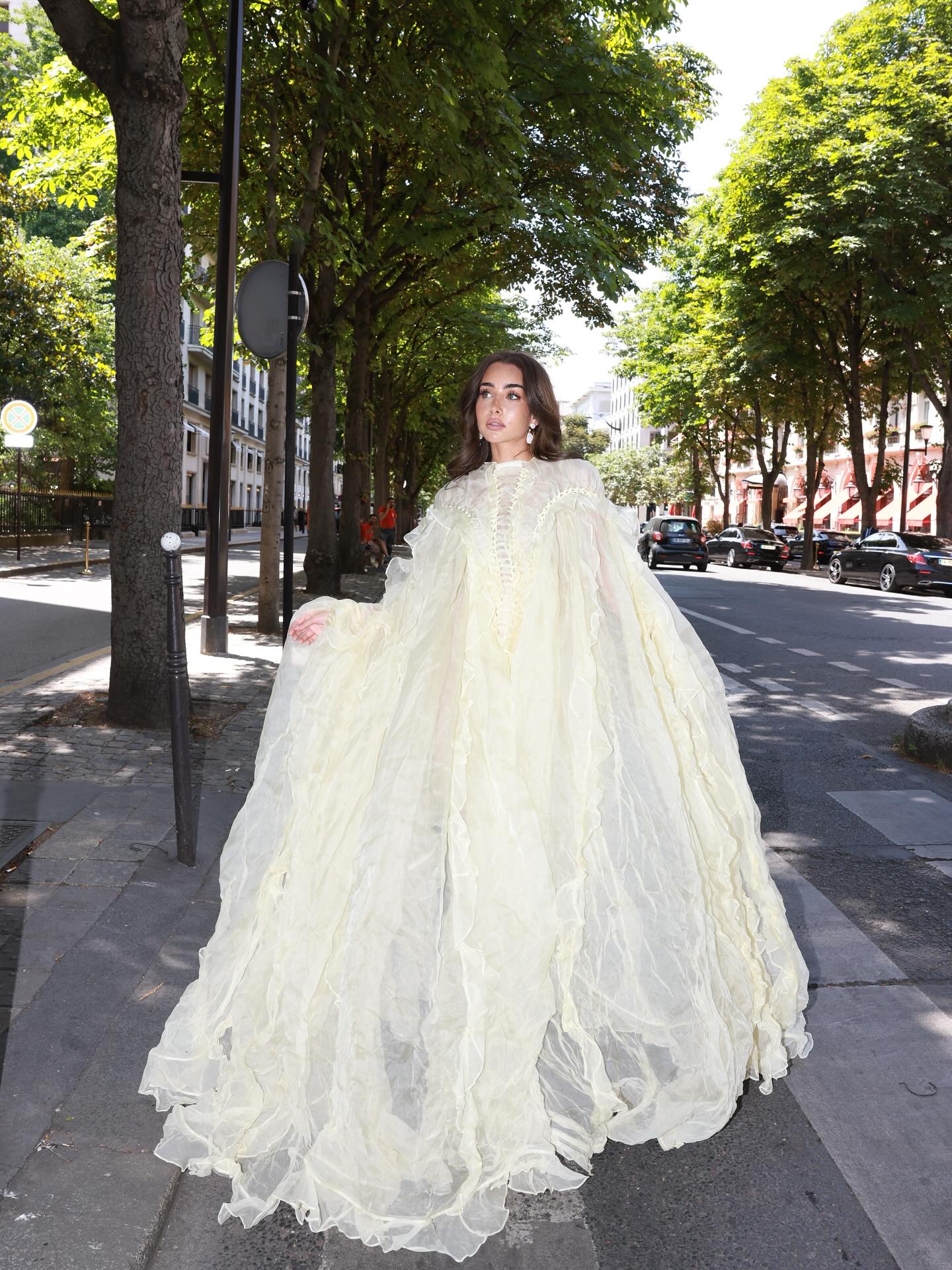 رم - نشرت الفنانة #هنا_الزاهد عبر حسابها على إنستغرام صوراً جديدة، حيث أطلّت بفستان بتصميم عصري بلون أصفر فاتح، من توقيع دار ZIMMERMANN. جاء الفستان بتفاصيل كشكش ناعمة وأكمام منسدلة، ما أضفى على الإطلالة طابعاً ملكياً حالماً يناسب الأجواء الصيفية الأوروبية.