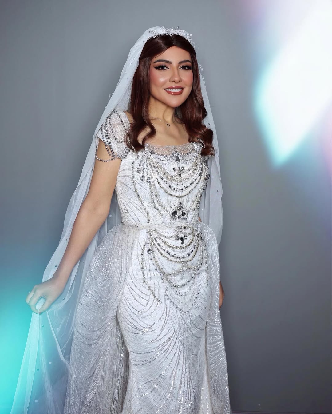 رم - تألقت الفنانة المصرية #مي_كساب بفستان زفاف أبيض مرصع بكريستالات بارزة مع طرحة طويلة من توقيع مصمم الأزياء المصري عمرو سعيد، وشاركت إطلالتها بمجموعة صور عبر حسابها على إنستغرام وعلقت: كوني عروسة كل يوم.