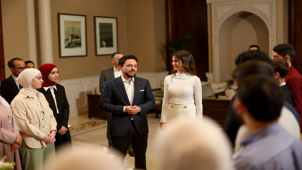رم - استقبل نائب جلالة الملك، سمو الأمير الحسين بن عبدالله الثاني ولي العهد، بحضور سمو الأميرة رجوة الحسين، في قصر بسمان الزاهر، أوائل الثانوية العامة من الطلبة النظاميين للسنة الدراسية 2024-2025، وهنأهم على تفوقهم.