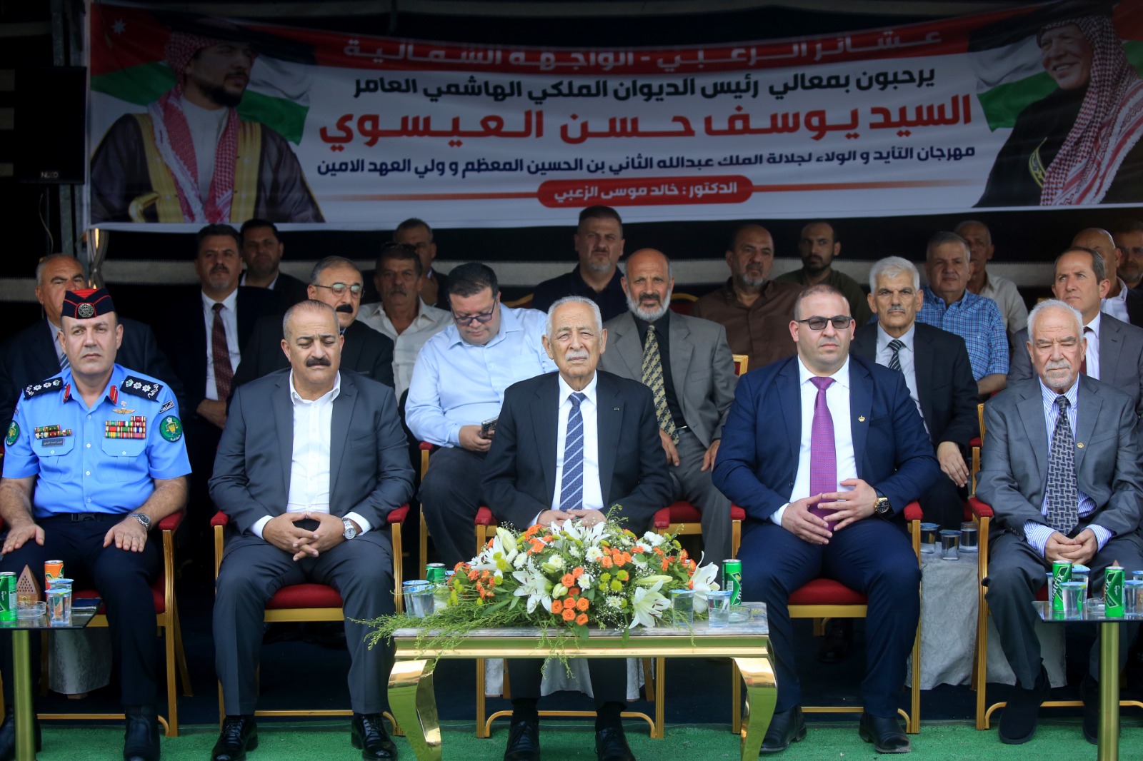 رم - الرمثا – رعى رئيس الديوان الملكي الهاشمي يوسف حسن العيسوي، مهرجان الولاء والتأييد لجلالة الملك عبدالله الثاني وسمو الأمير الحسين بن عبدالله الثاني، ولي العهد والذي نظمته عشائر زعبيّة إقليم الشمال، تأكيداً على اعتزازهم بالقيادة الهاشمية.