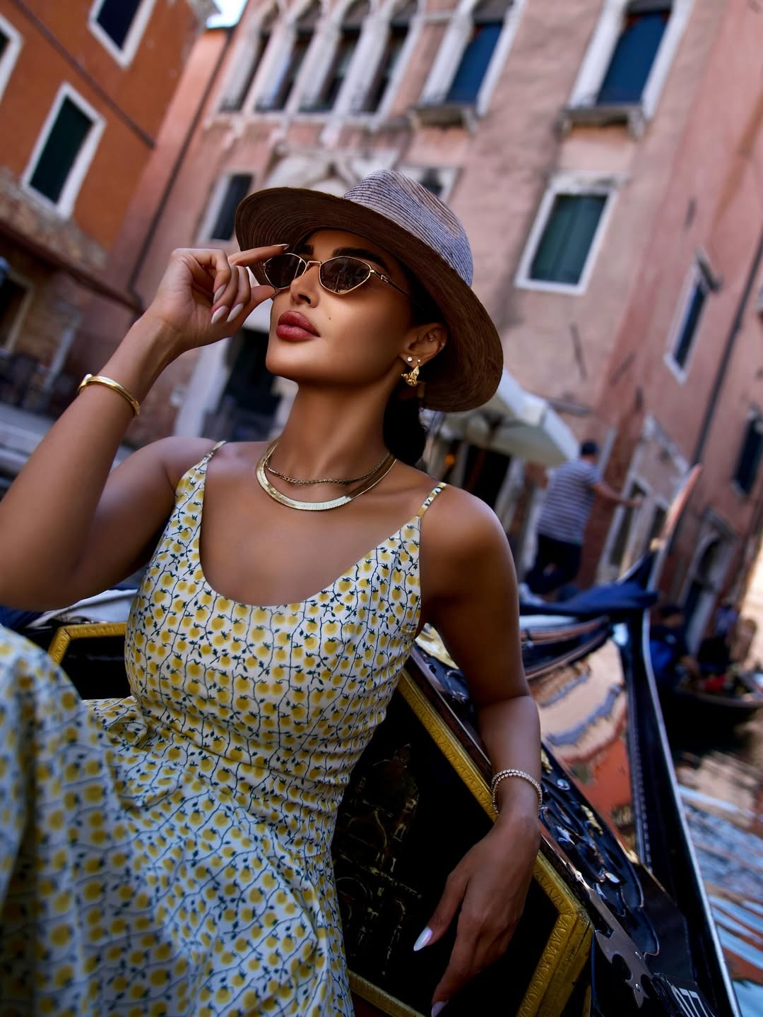رم - على متن قارب طويل يمشي في قنوات البندقية الإيطالية، أطلت الفاشينستا الكويتية مرمر بفستان صيفي منعش بطبعات الليمون حمل لمسة نابضة بالحيوية من علامة Staud، نسقته مع حقيبة صفراء من Loewe.