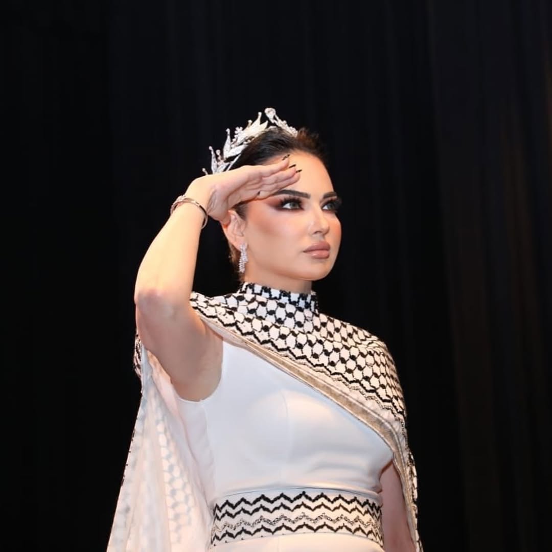 صفاء سلطان بفستان بنقشة الكوفية الفلسطينية