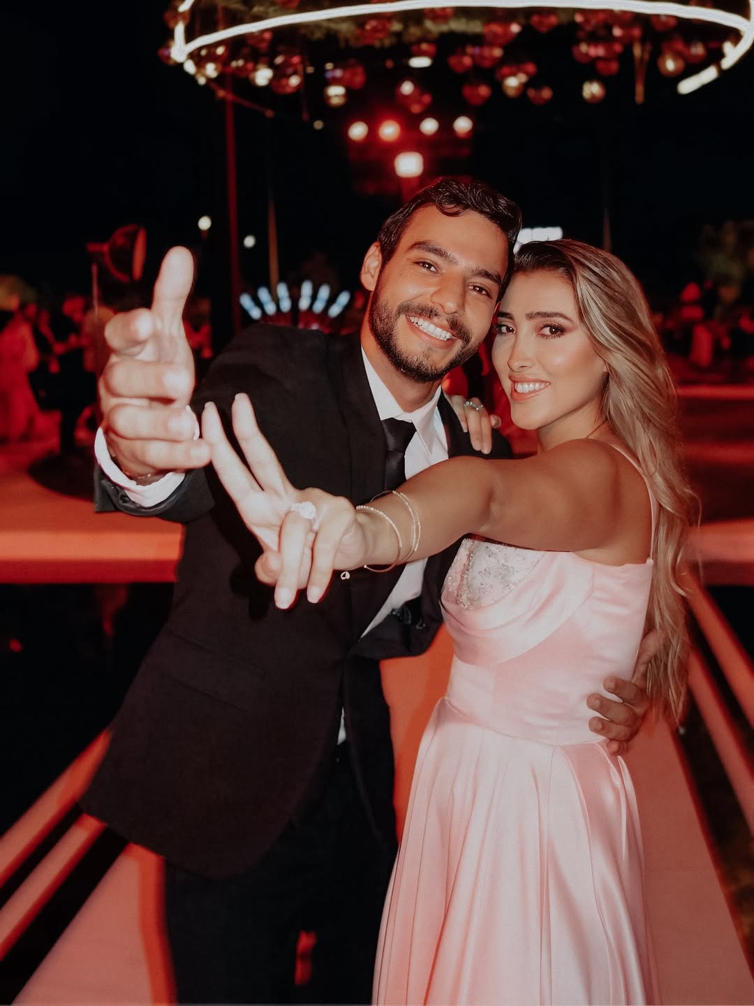 واختارت فاتنة فستانًا ناعمًا من الساتان باللون السيمون ومطرزًا من الأعلى، أما سليمان فاختار بدلة باللون الأسود..