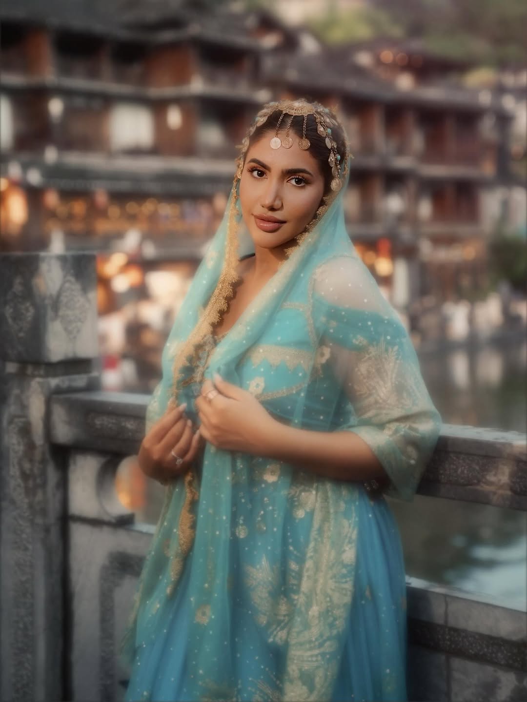 رم - شوقت اليوتيوبر العراقية #نور_ستارز متابعيها لسلسلة فيديوهات جديدة صورتها خلال رحلتها إلى الصين، وظهرت بإطلالة ساحرة مستوحاة من الأزياء النسائية الصينية، بفستان أزرق فاتح مزين بتطريزات ذهبية ناعمة مع طرحة شفافة أضافت لمسة أنثوية.