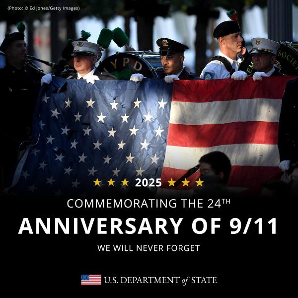 Commemorating the 24th Anniversary of 9/11. We will never forget.”