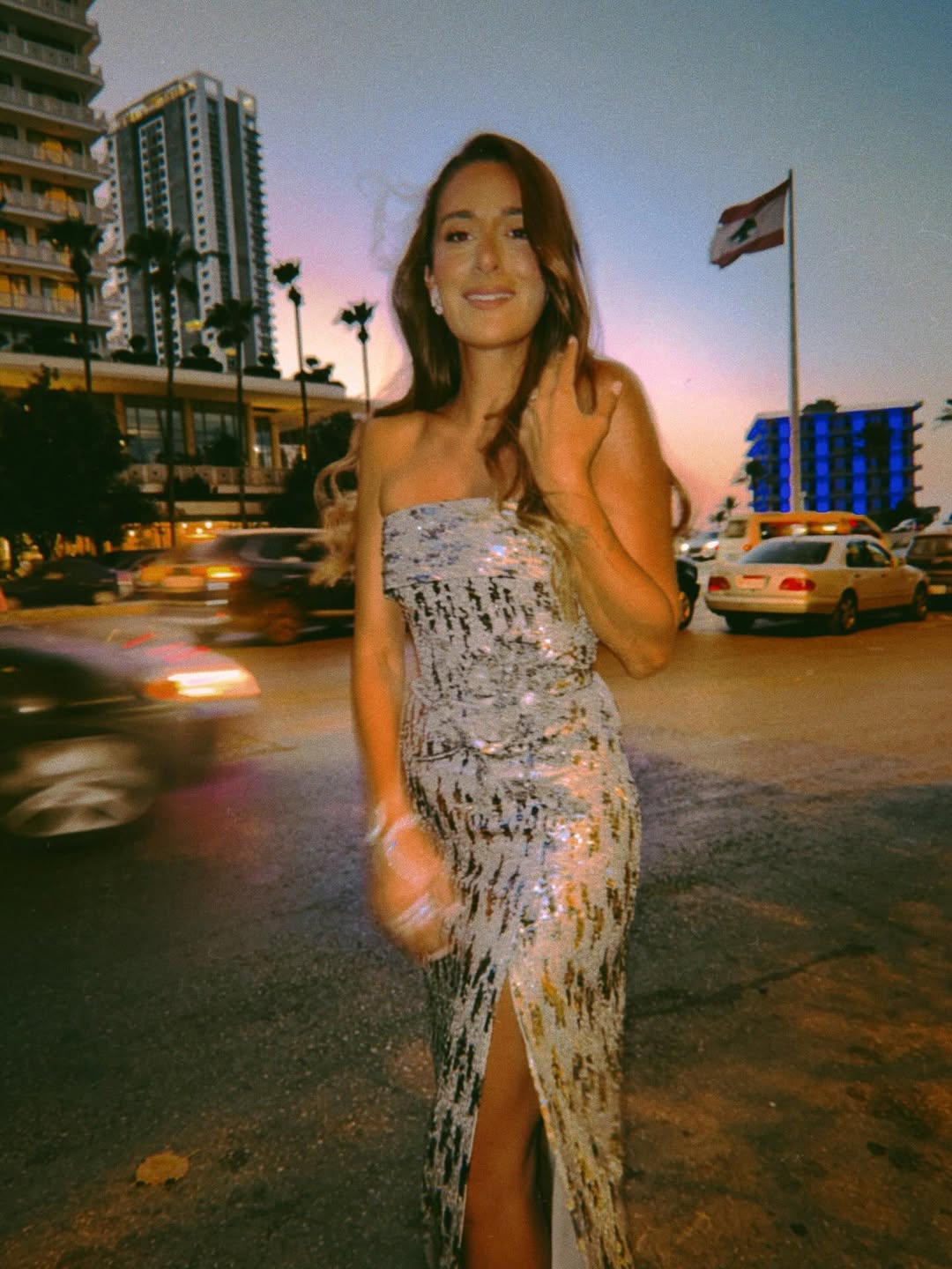 رم - النجمة #أمينة_خليل بصور من شوارع بيروت مع العلم اللبناني، خلال حضورها ليلة #موريكس_دور.