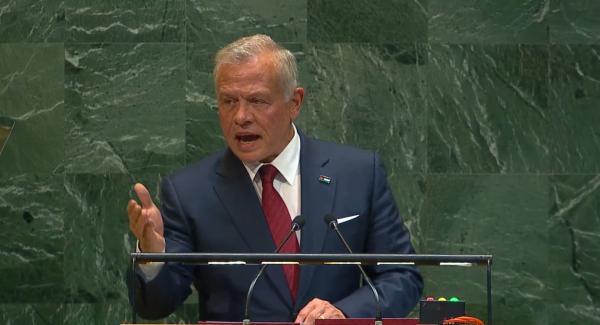 وأضاف جلالته خلال خطاب ألقاه في الدورة الثمانين للجمعية العامة للأمم المتحدة "عام آخر، ومرة أخرى تعقد فيها اجتماعات الجمعية العامة للأمم المتحدة، ومحفل آخر أقف فيه أمامكم لأتحدث عن القضية ذاتها: الصراع في الشرق الأوسط".