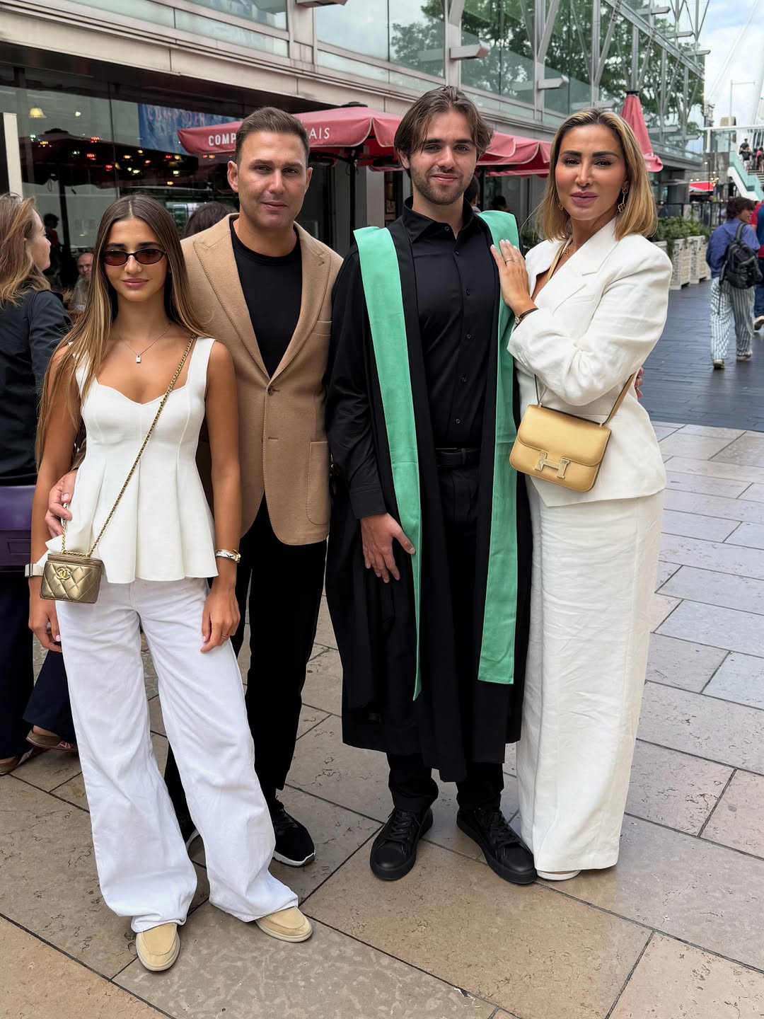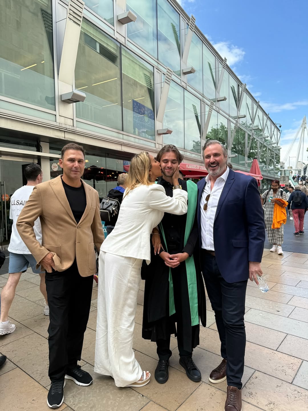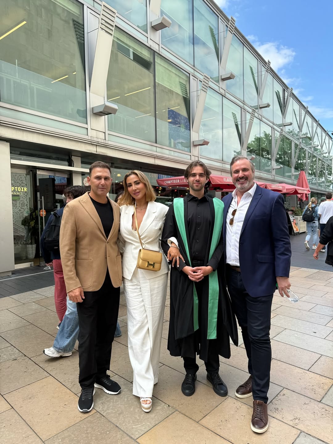 رم - شاركت خبيرة التجميل #جويل_مردينيان صورا من احتفالها مع عائلتها بتخرج ابنها الأكبر "بايلي"عبر "إنستغرام"، وكان في الصور التي التُقطت في لندن، زوجها الحالي كمال قدورة، وطليقها والد "بايلي". واجتمعت العائلة بعدها احتفالا به في المنزل في أجواء من البهجة والسعادة.