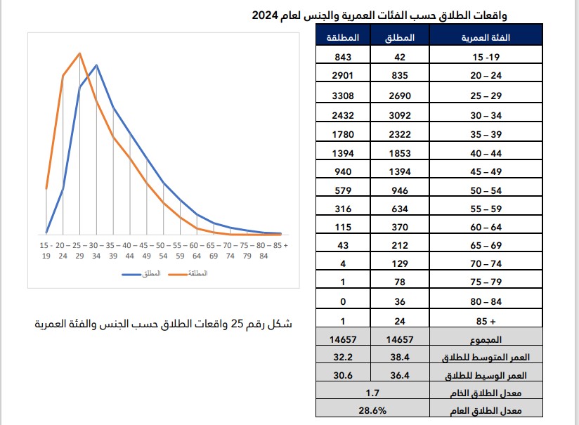14657 حالة طلاق بمعدل 28.6% العام 2024