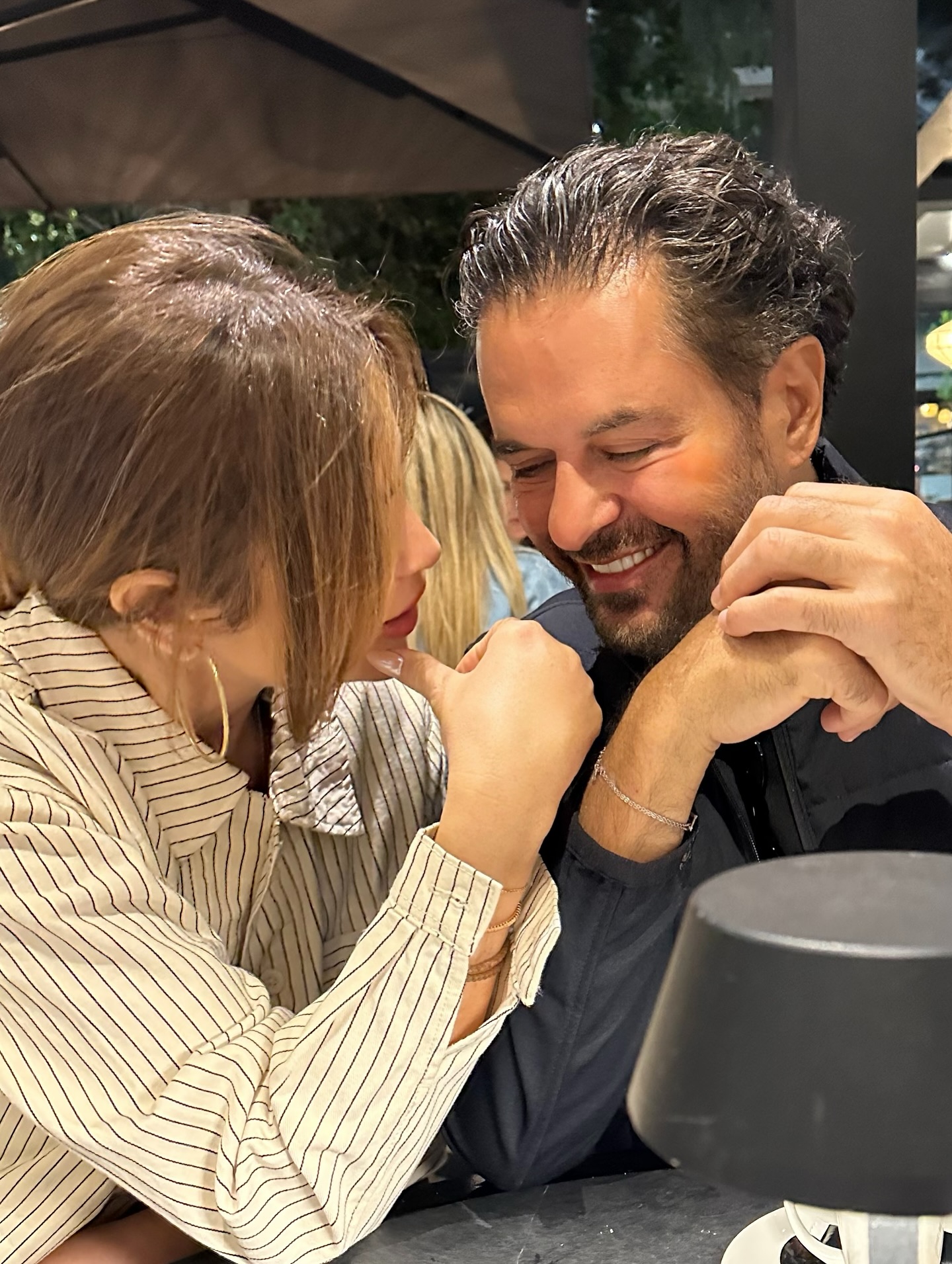 رم - وسط الطبيعة في أثينا، نشرت جيهان علامة زوجة النجم راغب علامة مجموعة صور عبر حسابها على إنستغرام تجمع الثنائي أثناء عشاء رومانسي وسط الغروب وكتبت على الصور رسالة رومانسية لزوجها في مضمونها: "أعلن لكل العالم حبي لك"