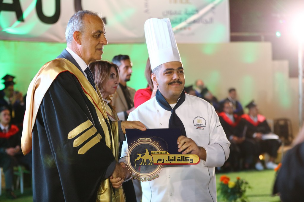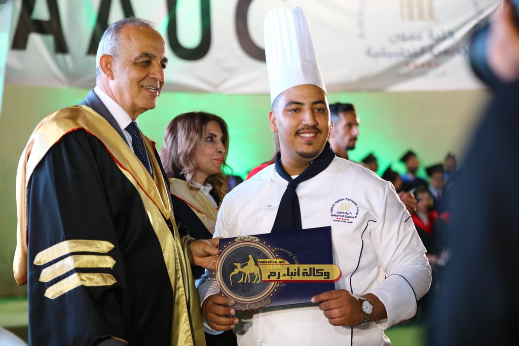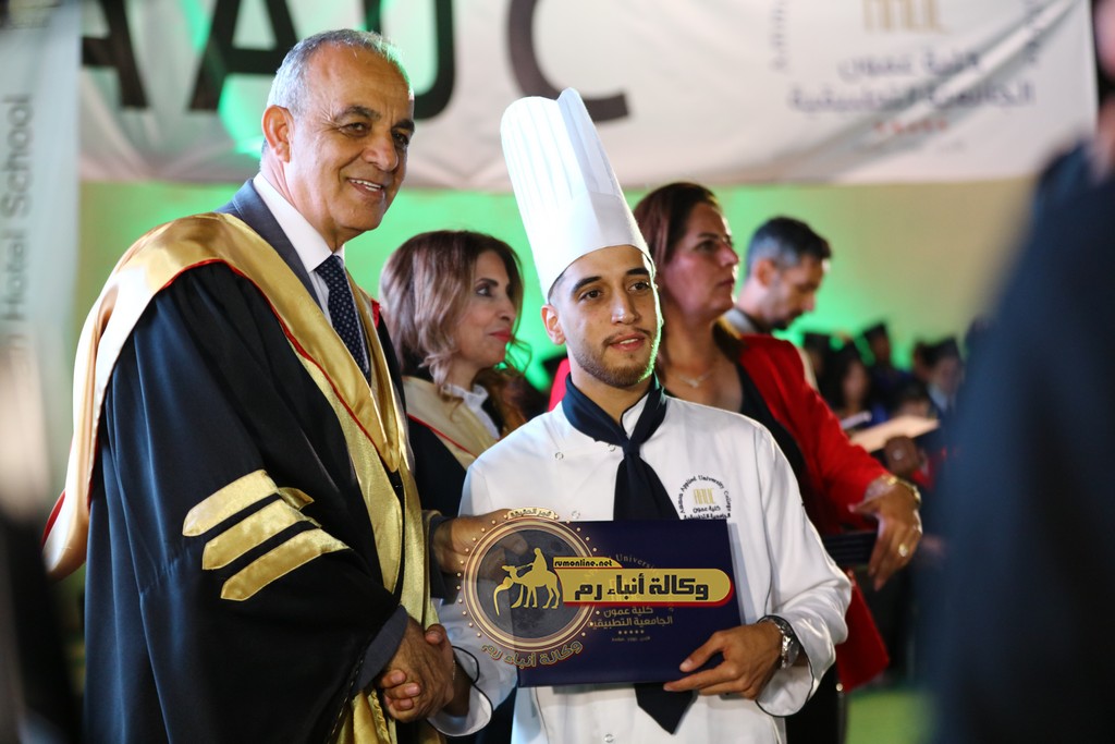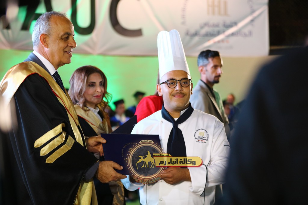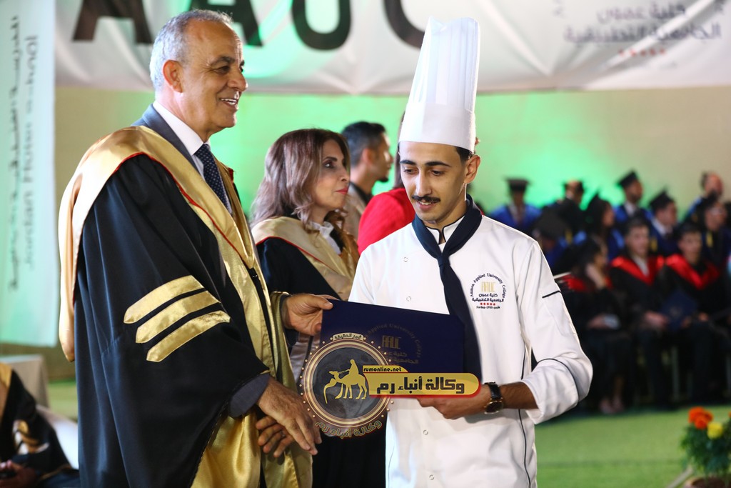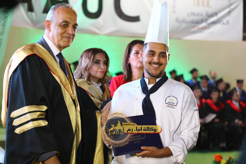 تحت رعاية وزير السياحة والآثار الدكتور عماد الحجازين، احتفلت كلية عمون الجامعية التطبيقية مساء اليوم الثلاثاء، بتخريج الفوج الثاني والعشرين من طلبة بكالوريوس الإدارة الفندقية والفوج الخامس بكالوريس الإدارة الفندقية/ إدارة أعمال الفعاليات والفوج السابع لطلبة دبلوم فنون الطهي والفوج الثامن والعشرين لطلبة دبلوم إدارة الفنادق، في فندق السنتشري بارك في عمان.