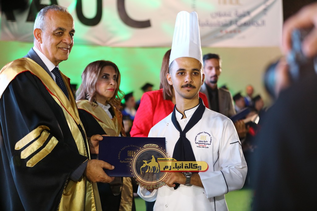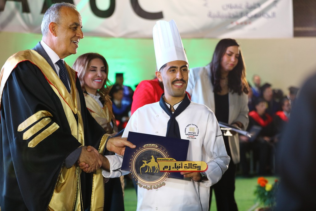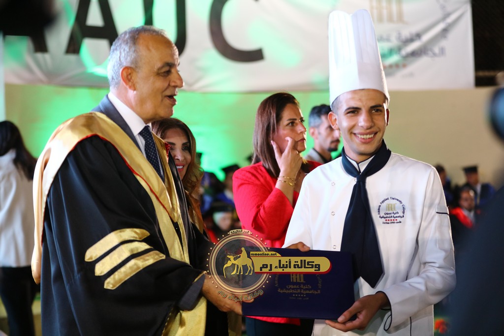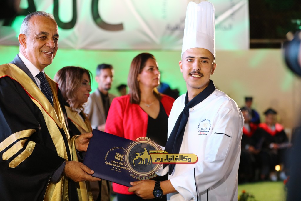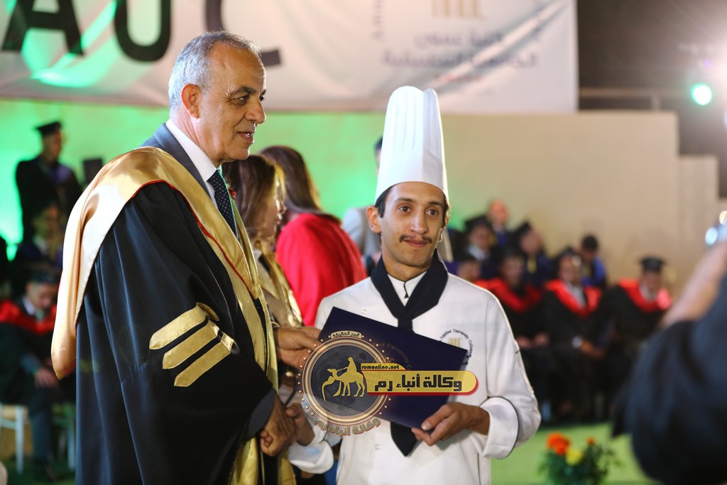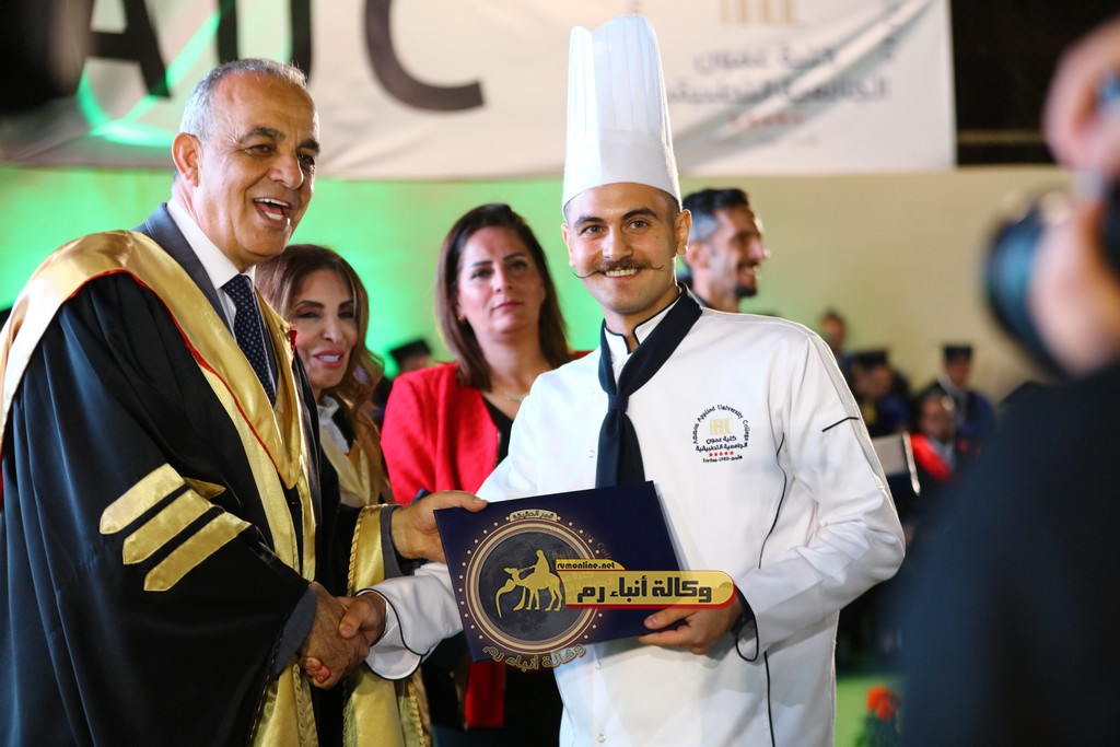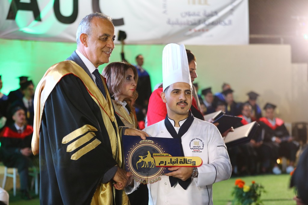 تحت رعاية وزير السياحة والآثار الدكتور عماد الحجازين، احتفلت كلية عمون الجامعية التطبيقية مساء اليوم الثلاثاء، بتخريج الفوج الثاني والعشرين من طلبة بكالوريوس الإدارة الفندقية والفوج الخامس بكالوريس الإدارة الفندقية/ إدارة أعمال الفعاليات والفوج السابع لطلبة دبلوم فنون الطهي والفوج الثامن والعشرين لطلبة دبلوم إدارة الفنادق، في فندق السنتشري بارك في عمان.