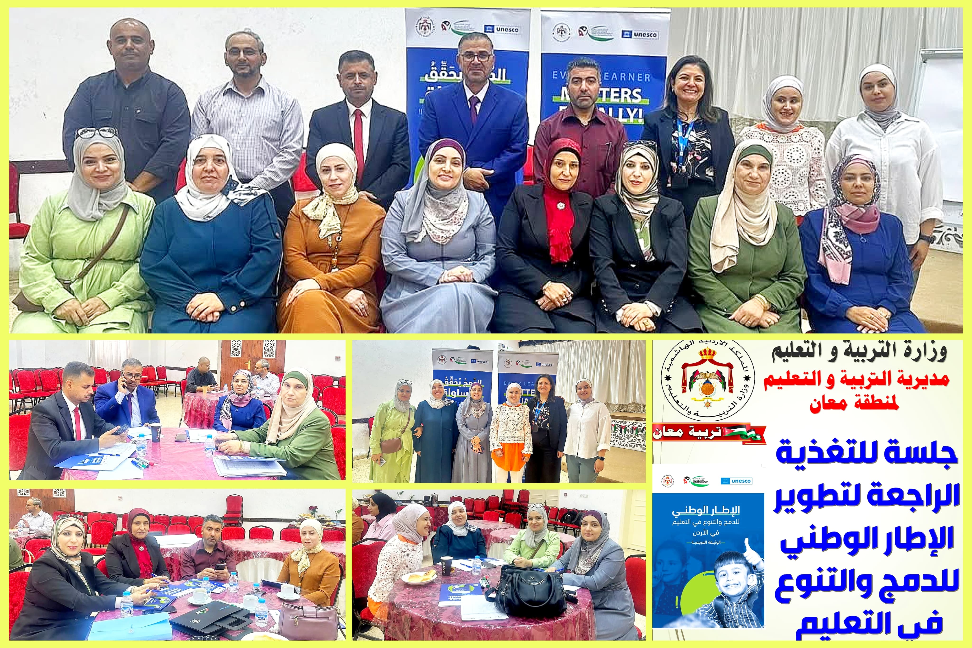 رم - في إطار الجهود الوطنية الرامية إلى تعزيز مبادئ العدالة التعليمية والمساواة في فرص التعلم لجميع الطلبة دون استثناء، عقدت وزارة التربية والتعليم الأردنية بالتعاون مع المجلس الأعلى لحقوق الأشخاص ذوي الإعاقة في قاعة نادي معلمي محافظة معان وبالتعاون مع مديرية التربية والتعليم لمنطقة معان، جلسة تغذية راجعة لتطوير الإطار الوطني للدمج والتنوع في التعليم، وذلك بمشاركة أعضاء اللجان الفرعية للتعليم الدامج في مديريات التربية والتعليم في معان والعقبة و البادية الجنوبية و البترا و الشوبك.