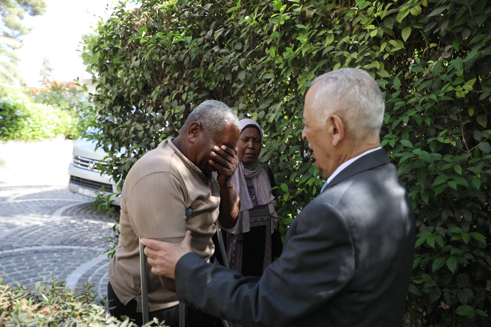 حينها، تبدلت ملامح الحزن إلى ابتسامة، وارتسمت على وجهه فرحة أبٍ شعر أخيرًا أن صوته وصل، وقال بتأثر "ما خيّبتوا ظننا، الله يخلي سيدنا ويطول عمره".