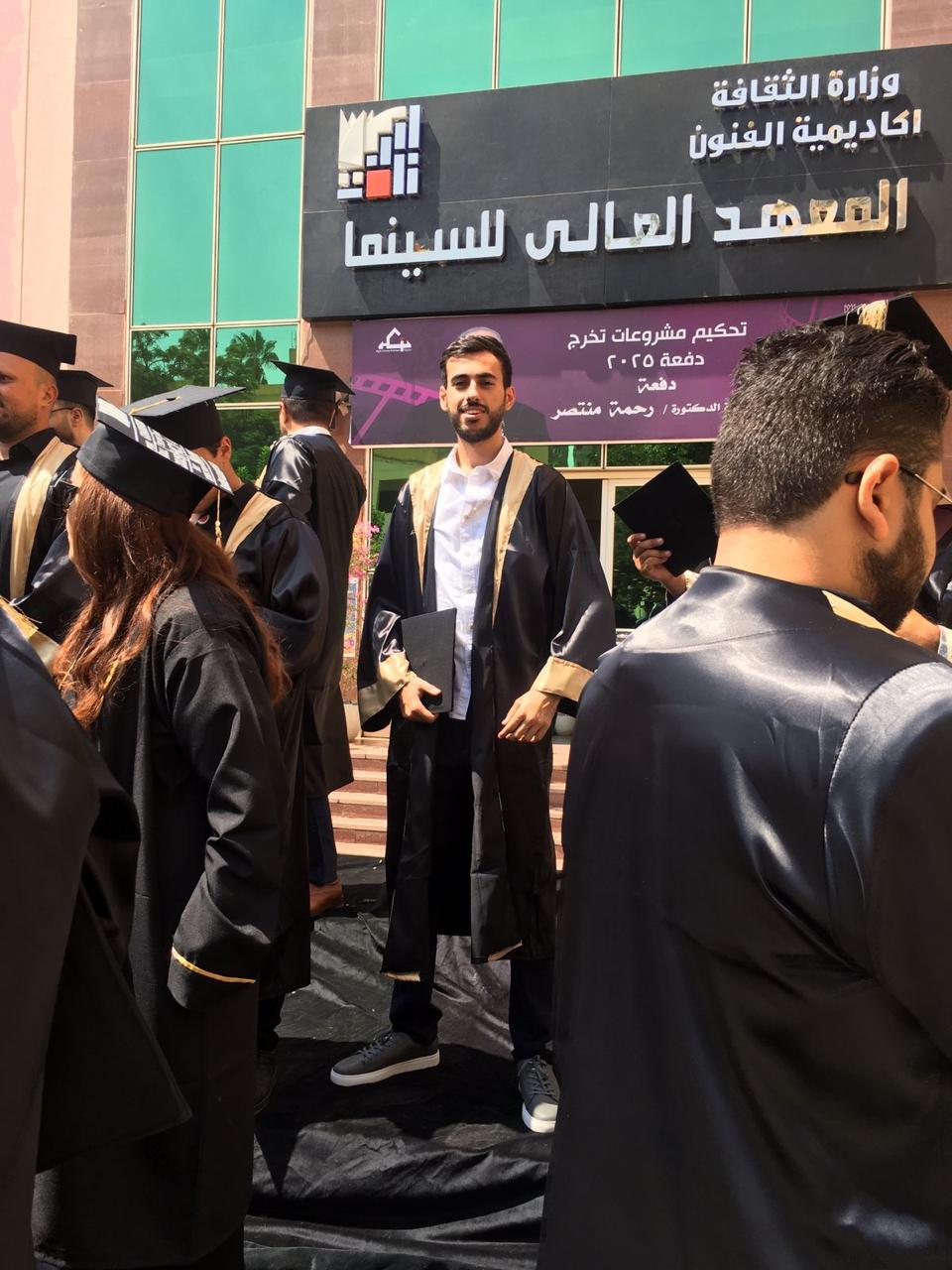 رم - المعهد العالي للسينما في القاهرة يمنح زيد حسن السبايله درجه البكالوريوس في الاخراج السينمائي بتقدير جيد جدا ، بعدأن شهد المعهد العالي للسينما بأكاديمية الفنون التابعة لوزارة الثقافة المصرية فعاليات تحكيم مشروعات تخرج دفعة 2025 المسماة لهذا العام على اسم الدكتوره رحمة منتصر، حيث قدّم زيد حسن السبايلة – الطالب الأردني الوحيد في المعهد – فيلم تخرجه أمام لجنة أكاديمية متخصصة بحضور رئيسه اكاديميه الفنون المصرية دكتوره النقد الفني غادة جباره ورئيسه المعهد العالي للسينما الدكتوره ايمان يونس وبحضور الكادر الأكاديمي ولجنه تحكيم متخصصه من خارج المعهد .