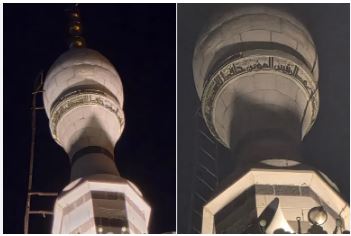 وبدأ ناشطون بتداول الصورة التي أفادوا بأن شخصا كان يحاول التقاط صورة للمئذنة بهاتفه ليفاجأ بوجود اسم حافظ الأسد عليها.