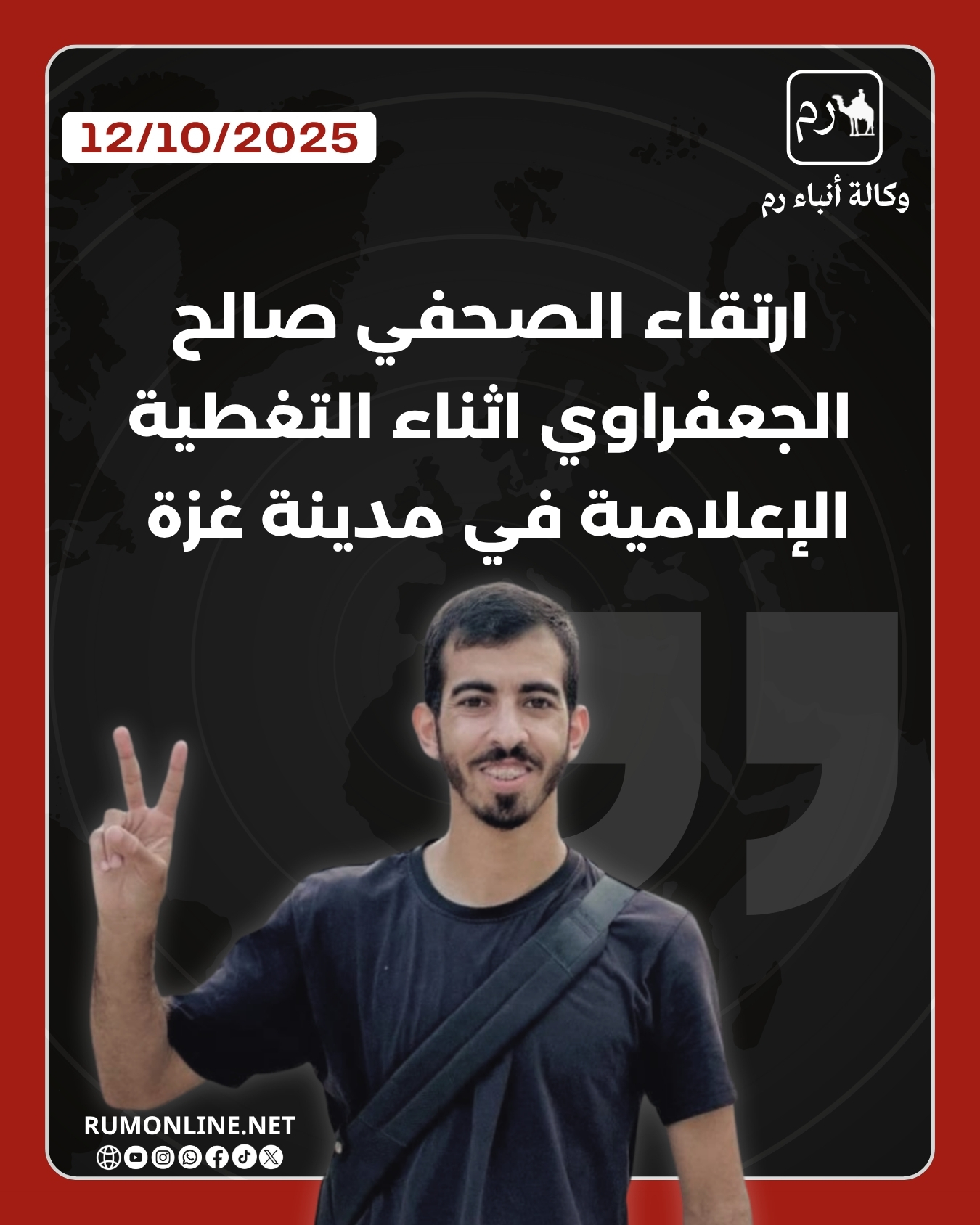 رم - نعى صحفيون فلسطينيون، مساء اليوم الاحد الصحفي الغزّي صالح الجعفراي الذي ارتقى خلل تغطية حدث امني داخلي في قطاع غزة.